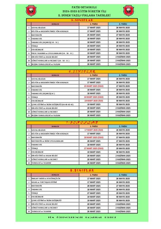 2.Dönem Sınav Takvimimiz Belli Olmuştur